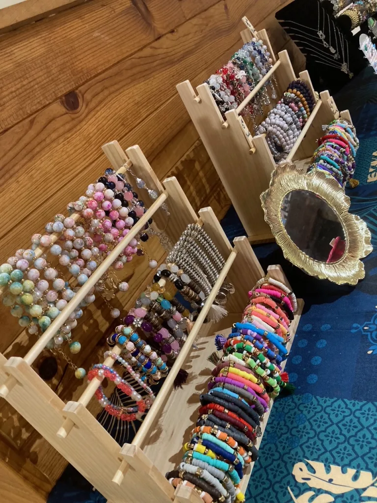 Les convives essaient les modèles de bijoux fantaisie tout au long de ce moment convivial. Les conseils et la personnalisation sont essentiels pour que chaque bijou soit unique.